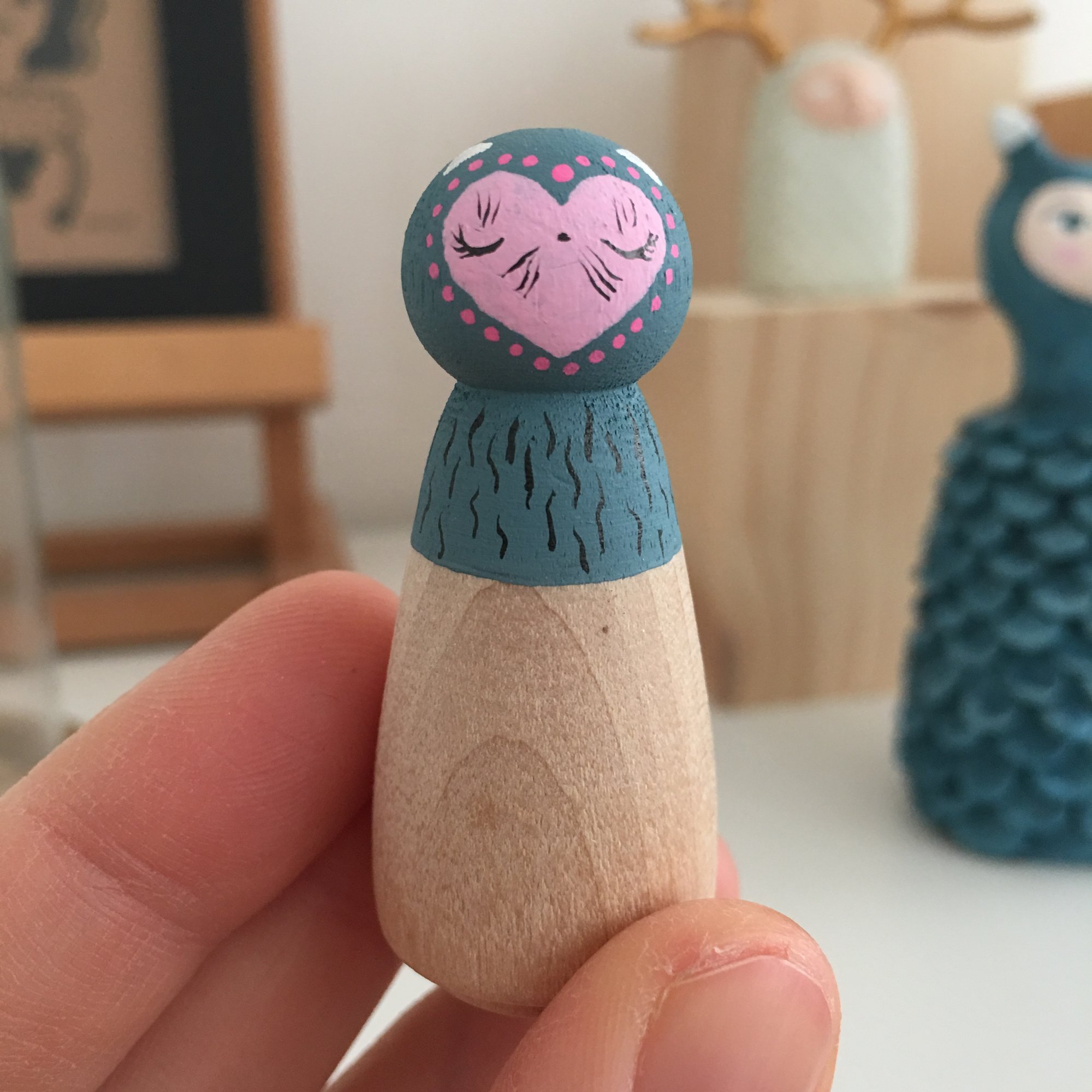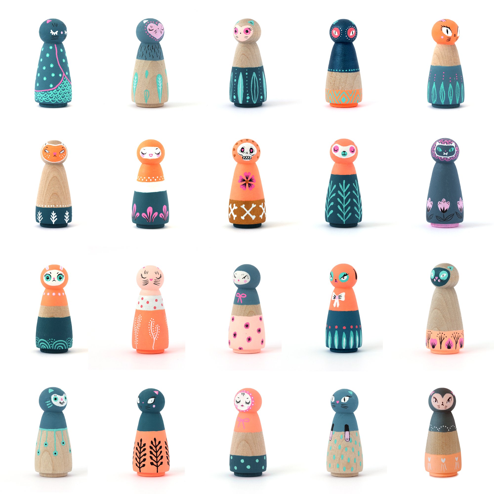 These dolls' fine details have been handpainted with acrylic paint and Posca markers.